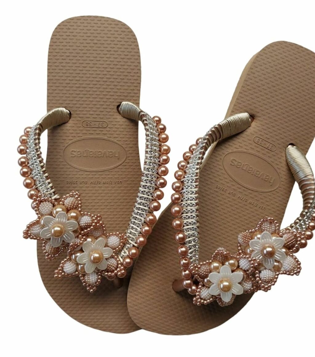 Encante-se com o charme do Chinelo Decorado Havaianas Top Marrom Claro Flor de Margarida da Marilep.